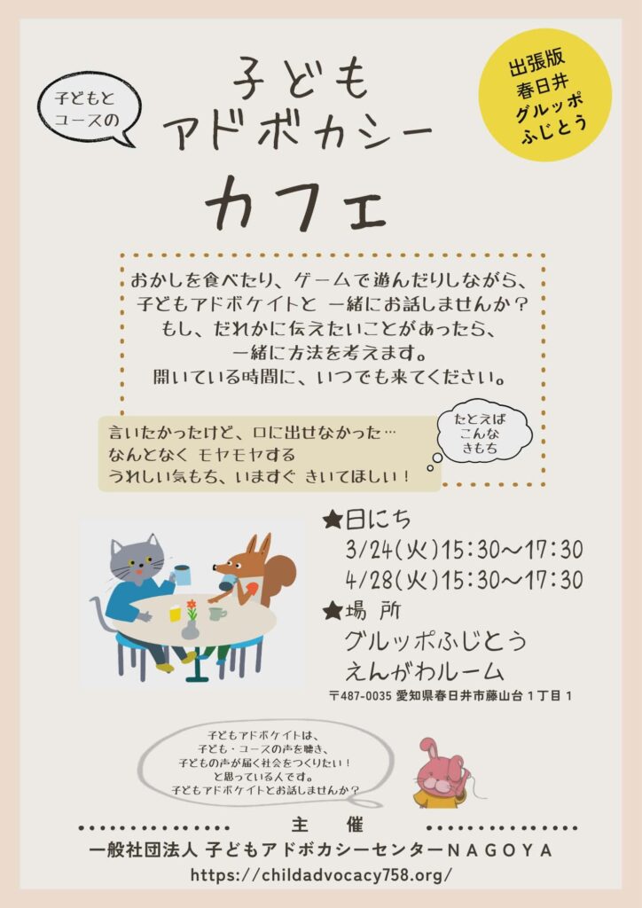 子どもアドボカシーカフェをグルッポふじどう(春日井市)にも出張して開催します!
